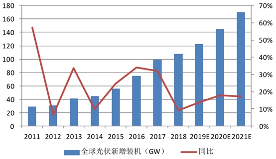 展望2020年,光伏玻璃需求增长依旧乐观。智通财经APP了解到,首先是光伏装机回暖在提振光伏玻璃需求,根据国际可再生能源机构数据显示,光伏2010年的加权平均度电成本为0.371美元/KWh,到2018年已经下降77%至0.085美元/KWh,是近年来度电成本下降最快的能源,已经接近化石燃料成本区间的底部位置。并且随着技术进步和产业发展,光伏度电成本下降趋势仍将持续。此背景下,日照条件好的区域已经陆续进入平价上网时代,带给光伏装机巨大增长空间,预计未来几年将维持15-20%的年均装机增速。