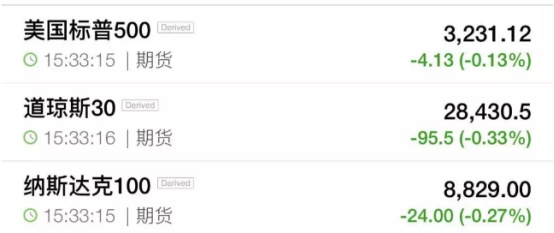 1月7日,隔夜美股三大股指全线收跌,截至收盘,道指跌0.42%报28583.68点,标普500跌0.28%报3237.18点,纳指跌0.03%报9068.58点。美股三大股指期货亦全线下跌,截至发稿,道指期货跌0.33%,标普500期货跌0.13%,纳指期货跌0.27%。