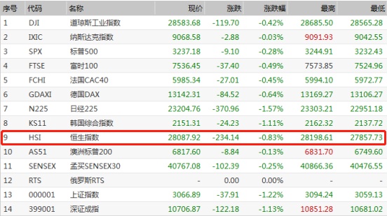 智通财经APP观测到,全球市场亦遭到“血洗”。今日亚市阶段,港股恒指盘中一度暴跌超460点,盘中跌幅一度跌超1.6%,随后回升险守28000大关。上证综指和深成指双双跌超1%,日经225指数盘中一度跌至23000点下方,为去年11月以来首次,日内跌1.57%。