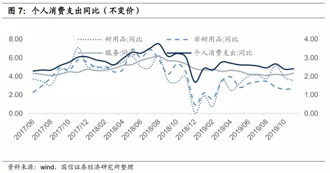 10-11月的数据消费数据基本持平,主要体现的是耐用品消费下滑明显,而服务维持了较强的韧性。
