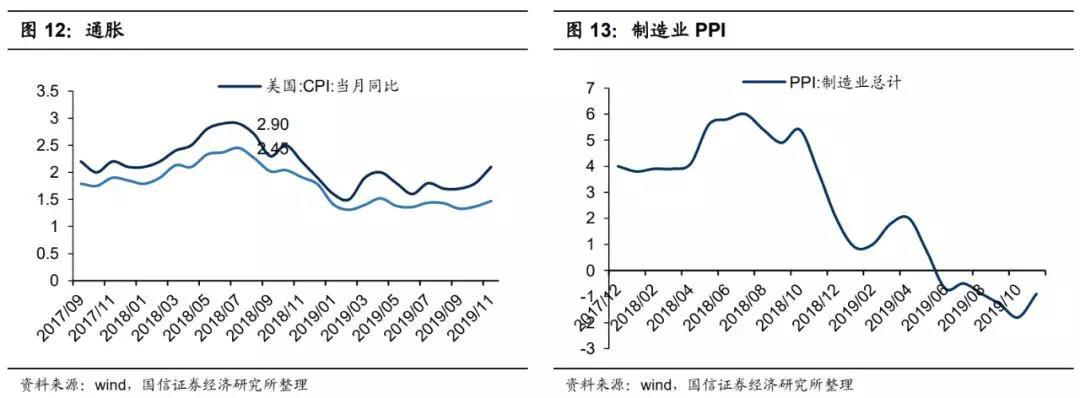 3)再次衰退信号:目前看衰退的概率较2019年大幅下降,但若是经济指标持续下行,或许不排除2020年仍然有一次降息以对冲衰退。