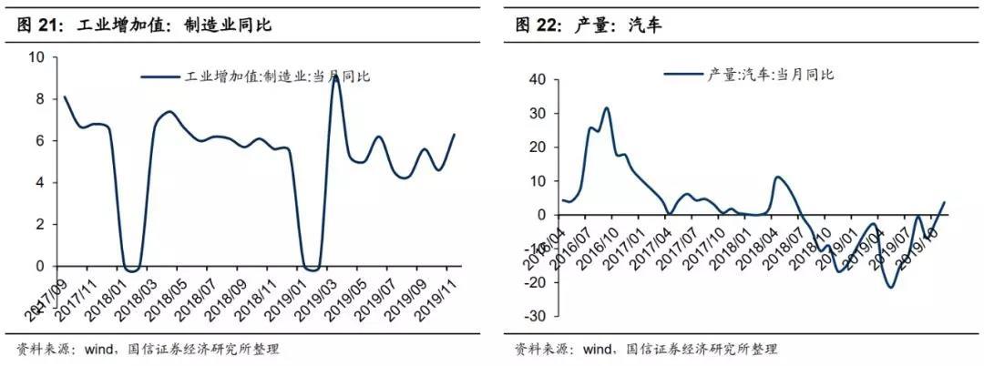 以汽车为例,产量同比在2019年5月触及低点,到了11月同比转正,反转的力度是明显的。