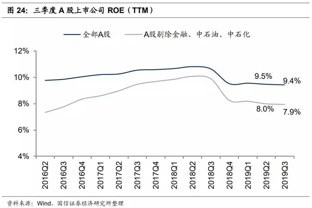 PPI在2019年11月,微幅向上拐头(10月份为-1.6%),11月份为(-1.4%),12月份国信证券宏观与固收团队预测约为-0.5%左右,并预计于2020年Q1转正。千万不要忽视这个指标的意义!PPI与ROE是同步的,这是因为,港股/A股上市企业周期类企业利润为大头,盈利最敏感的影响因素为价格指标。倘若:2019年4季度,PPI 10月份向下,11月份向上,12月份大幅向上,则4季度将会形成A股、港股上市企业ROE的拐点,即俗称的盈利底。
