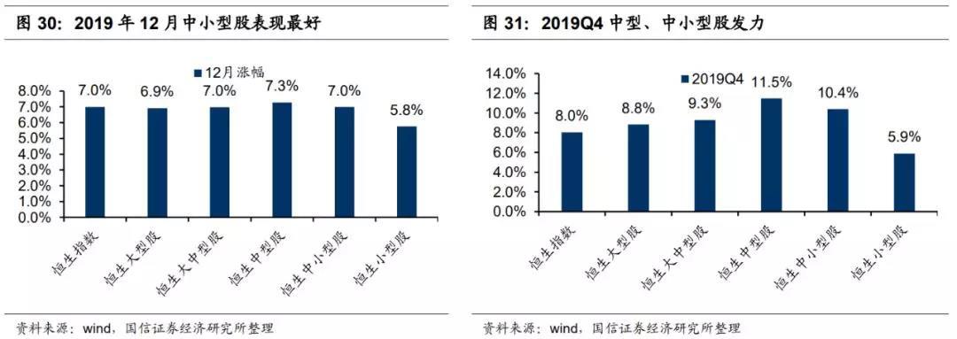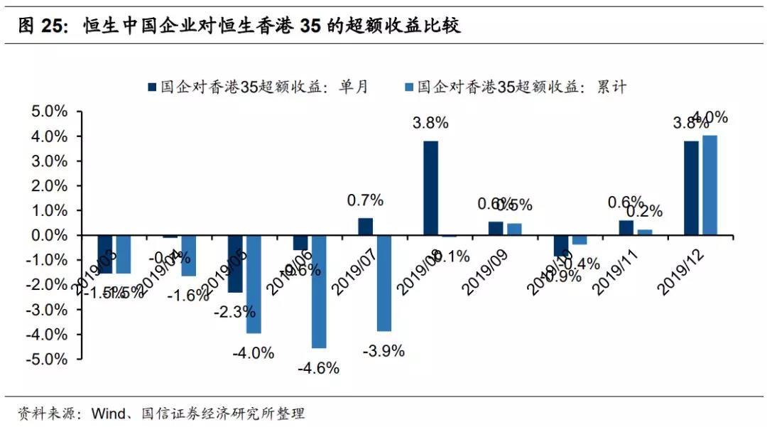 从11-12月的表现来看,国企指数显著跑赢香港本地股,这指出了2020年的发展趋势,当风险偏好上升,港股走强时,国企指数有着更低的估值,更高的成长性和业绩弹性。