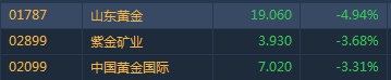 智通财经APP获悉,COMEX期金收跌1.07%报1557.5美元/盎司,较日高回落逾50美元。国际金价高位回落,拖累港股黄金板块集体走弱。截至9时41分,山东黄金(01787)跌4.94%,报价19.06港元。中国黄金国际(02099)跌3.31%,报7.02港元。紫金矿业(02099)跌3.31%,报3.93港元。