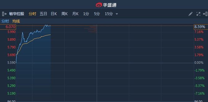 智通财经APP获悉,敏华控股(01999)斥资1986.08万港元回购355.2万股。该股早盘急升逾8%,高见6.09港元创一年半新高。截至10时33分,涨8.59%,报价6.07港元,成交额5398万。