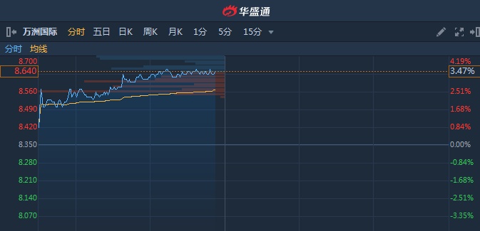 智通财经APP获悉,万洲国际(00288)获高盛看高至10港元,维持“买入”评级。截至11时51分,涨3.47%,报价8.64港元,成交额2.656亿。