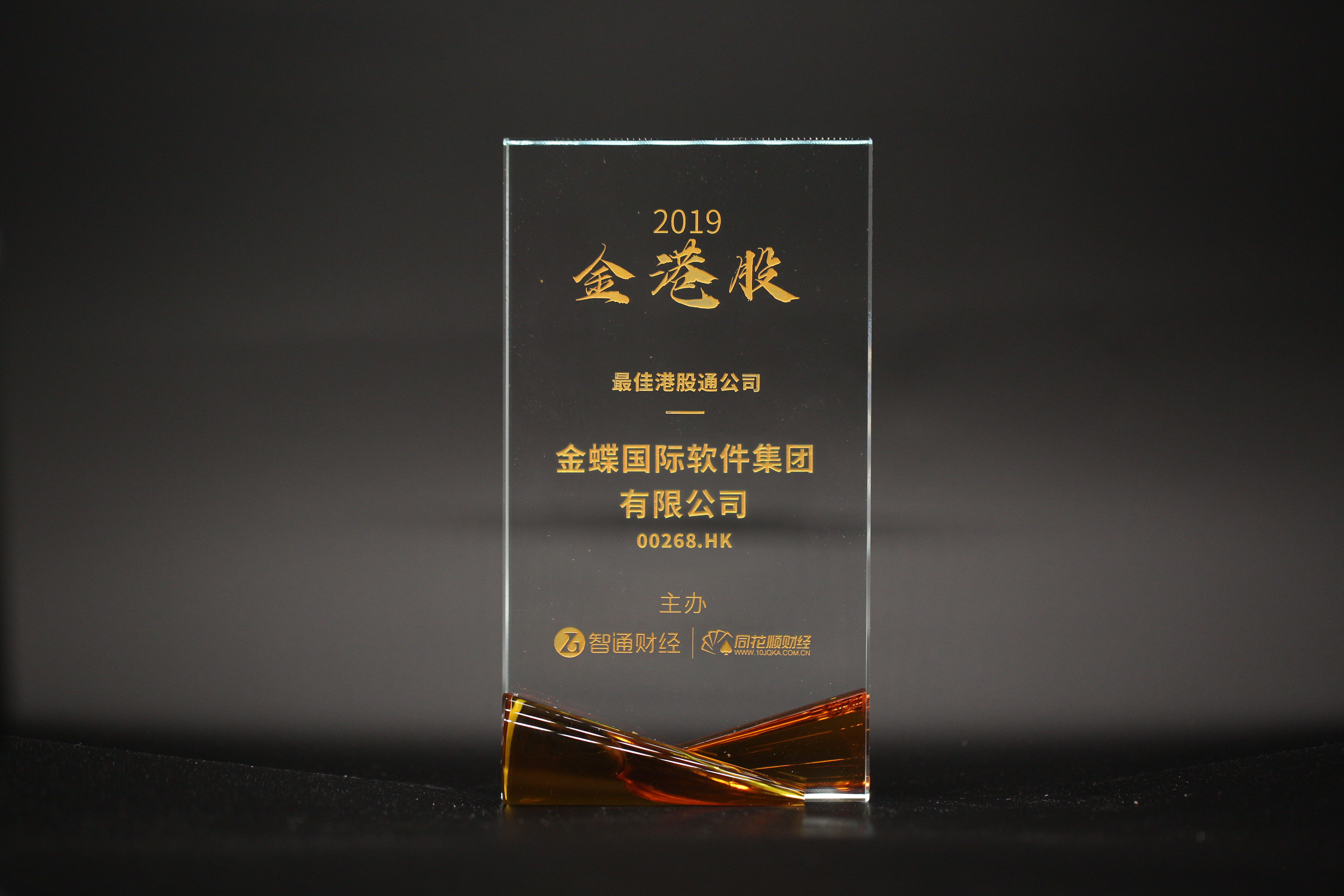 2020年1月9日,在深圳举办的“第四届金港股年度颁奖盛典”上,金蝶国际(00268)荣获“最佳港股通公司”大奖。