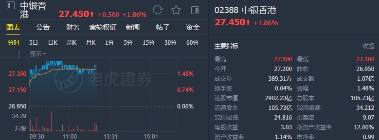 该行称,看好中银香港,因估计其贷增长较快、坏帐率较佳、中小企敞口较低以及内地风险可控。并提到截至去年9月底,中银香港的贷款同比增长12%,表现跑赢同业。另外,该行相信,恒生银行(00011)现时的估值,对于长期投资者来说,依然吸引。