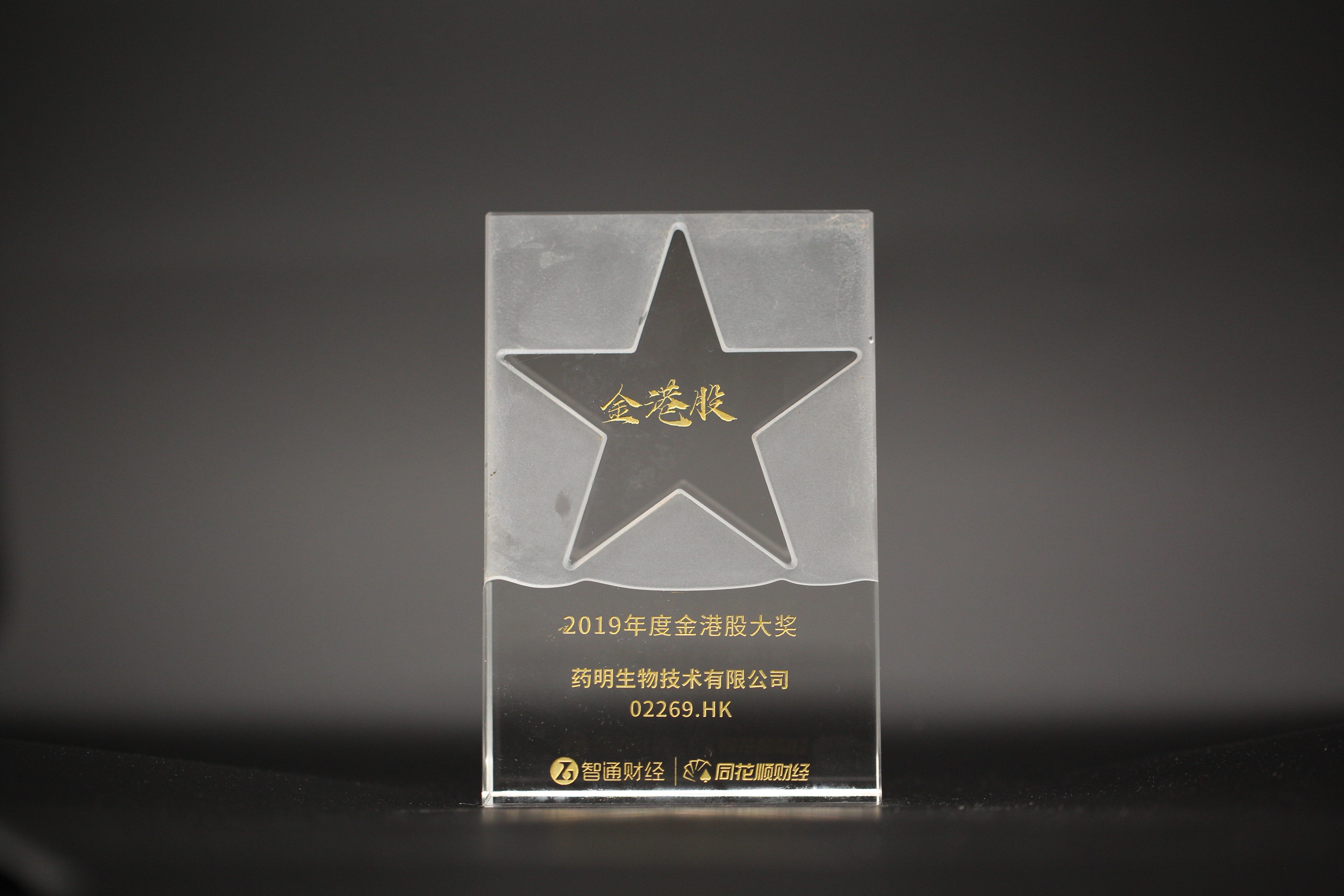 2020年1月9日,在深圳举办的“第四届金港股年度颁奖盛典”上,药明生物(02269)荣获“2019年度金港股公司”大奖。