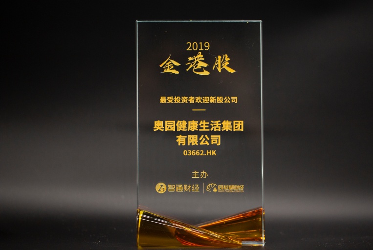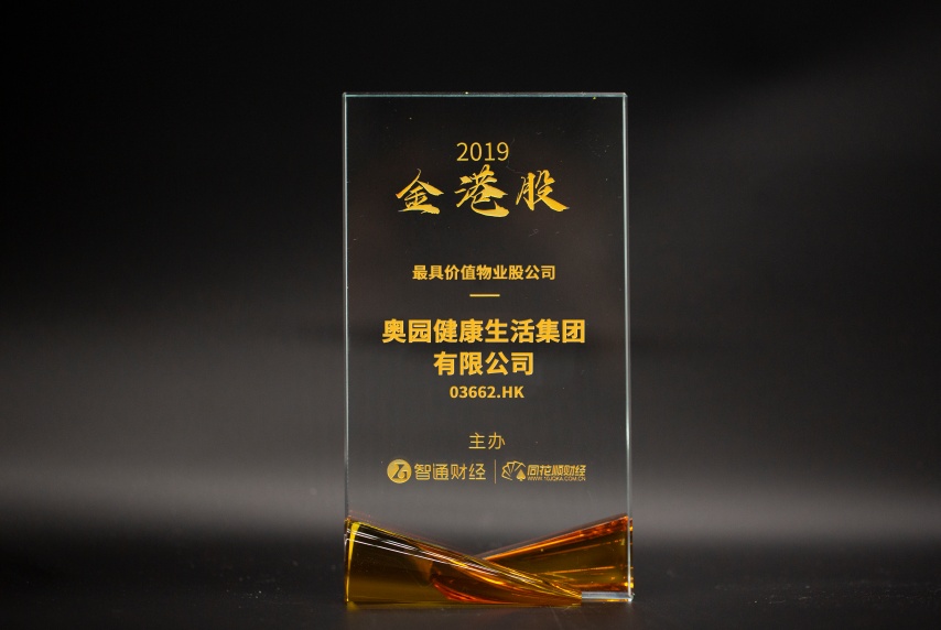 2020年1月9日,在深圳举办的“第四届金港股年度颁奖盛典”上,奥园健康荣获“最受投资者欢迎新股公司”、“最具价值物业股公司”大奖。