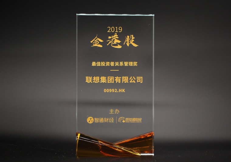 2020年1月9日,在深圳举办的“第四届金港股年度颁奖盛典”上,联想集团荣获“最佳TMT股公司”、“最佳投资者关系管理奖”大奖。