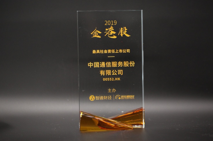 “最具社会责任上市公司”旨在表彰 公司努力践行社会责任,积极履行对消费者、社区和环境的责任,在精准扶贫、生态保护、公益捐赠等方面作出积极贡献的港股上市公司。此次中国通信服务获得“最具社会责任上市公司”奖项,凸显了业界和投资人对相关行业的关注,对中国通信服务是极大的鼓励,更是一种鞭策。