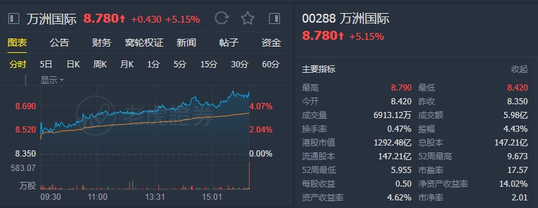 智通财经APP获悉,高盛发布报告称,重申万洲国际(00288)“买入”评级,目标价10港元。
