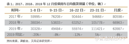 12月乘用车批发销量216万辆,同比-1.0%,环比+6.3%,符合预期。12月全国狭义乘用车批发销量216.2万辆,同比下降1.0%,环比增长6.3%。剔除6月及7月国五国六切换带来的扰动因素,自今年4月以来批发销量同比降幅均在不断收窄:-18%,-17%,-8%(6月),-4%(7月),-8%,-6%,-5.9%,-4.6%,-1.0%。12月狭义乘用车零售销量达214.1台,同比下降3.9%,环比增长11.1%;12月批发销量(216.2万辆)>零售销量(214.1万辆),显示终端处于加库状态。2019年全年批发销量为2110万辆,同比下降9.3%,上半年降幅较大,下半年降幅有所收窄。另外,乘用车产量已经连续两个月正增长,预计会对Q4汽车零部件板块的业绩起到良好的支撑作用。