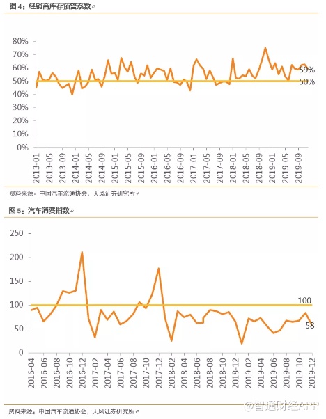 12月经销商库存预警指数59.0%,消费指数58.0。据中国汽车流通协会,12月经销商库存预警指数59.0%,环比下降3.5个百分点,同比下降7.1个百分点;12月汽车消费指数58.0,较11月有所下降。12月经销商库存预警指数仍位于警戒线以上,预计随春节临近消费需求回暖,1月库存预警指数有望进一步回落,消费指数有望回升。