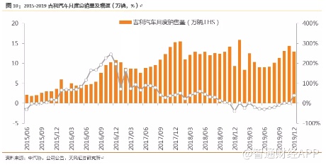 吉利汽车发布2019年12月产销快报:12月销量13.0万辆,同比+39.3%,环比-9.2%。