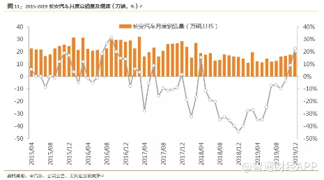 长安汽车发布2019年12月产销快报:12月销量19.3万辆,同比+22.5%,环比+9.8%。
