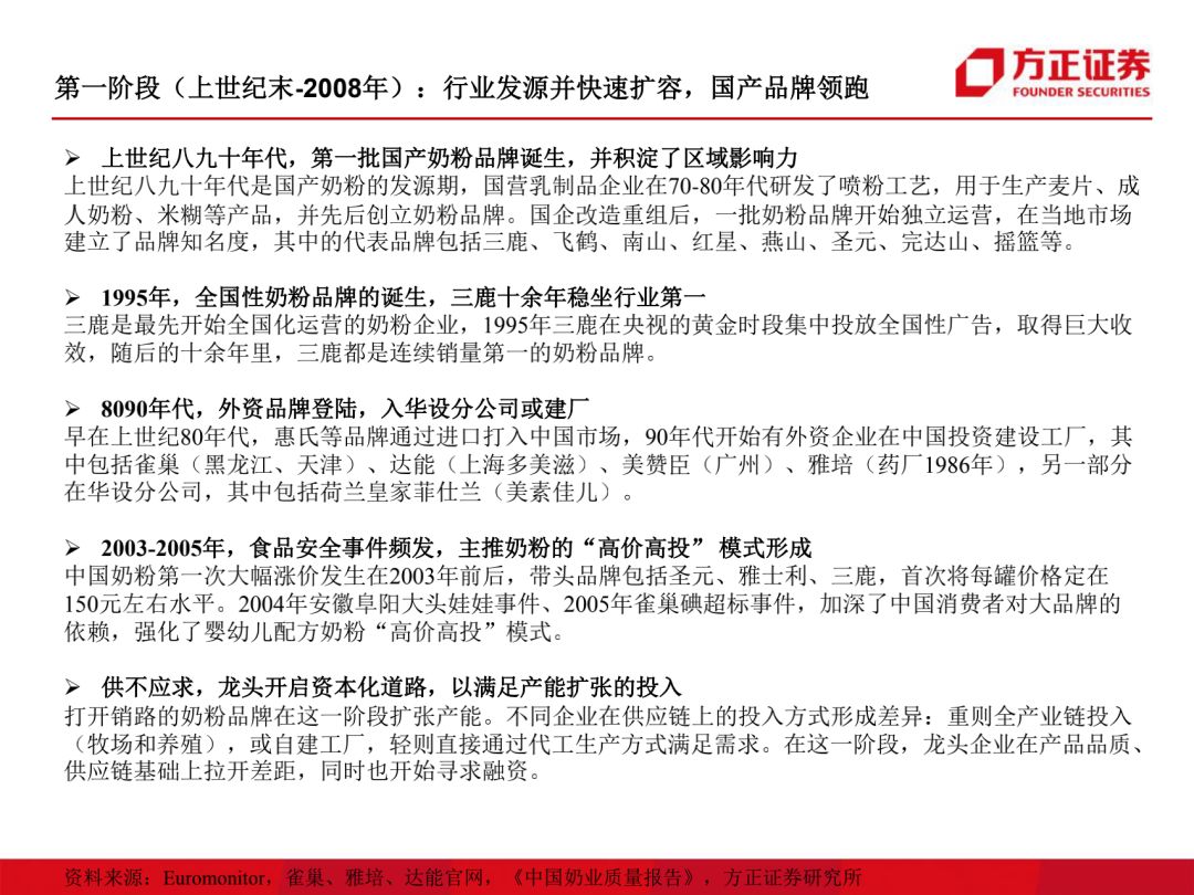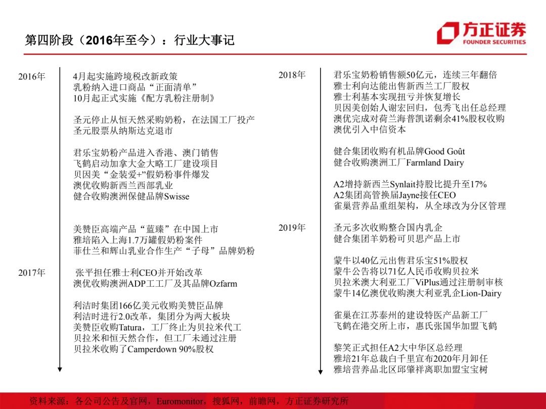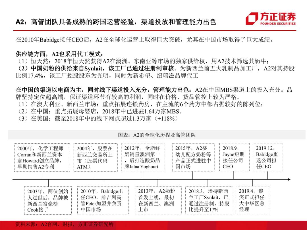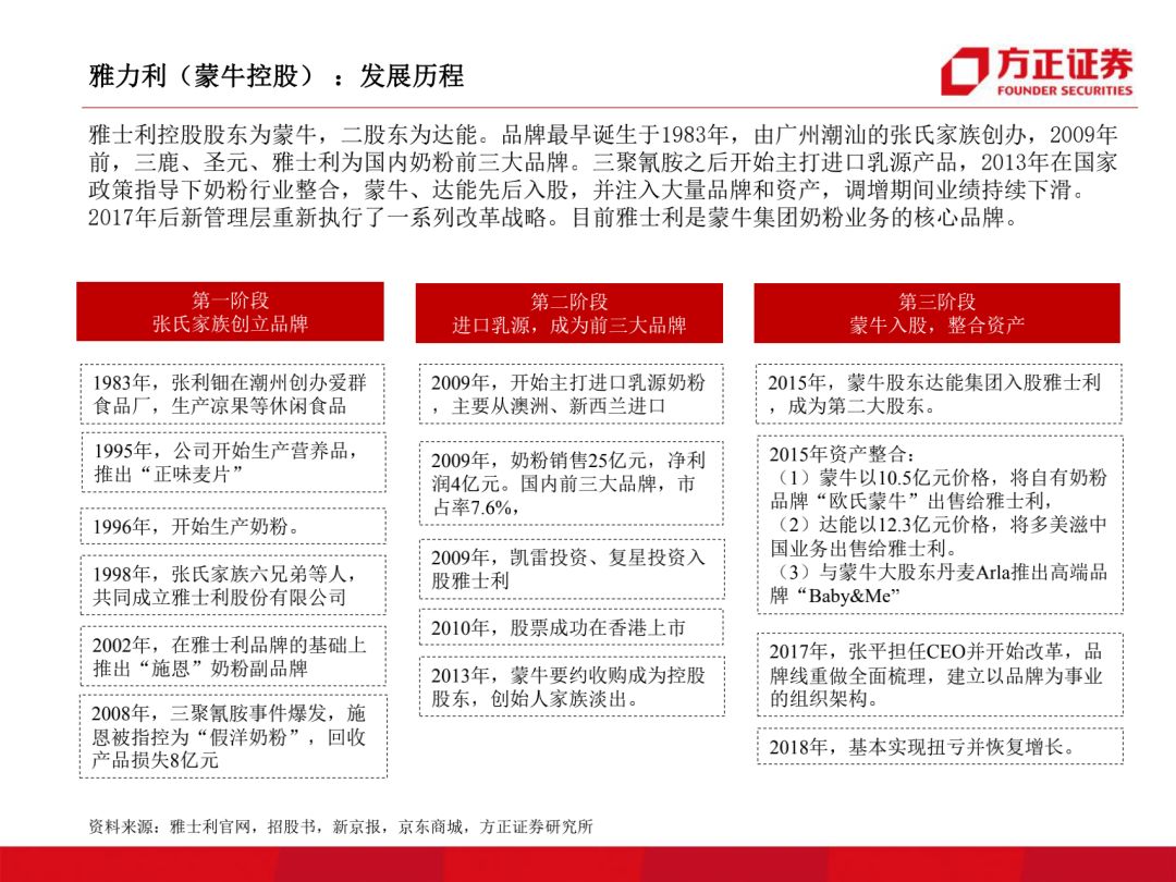 (2)第二是企业经营治理能力。奶粉仍然是一个高度依赖渠道的消费品,品牌沉浮和渠道变革息息相关,而渠道的本质是团队和管理。部分龙头企业经过十多年的发展锤炼,已经建立了成熟管理体系,团队和人才较为稳定,为执行长期发展战略、保证渠道政策的可延续性奠定了基础。