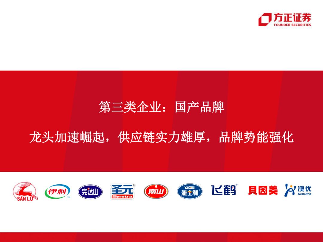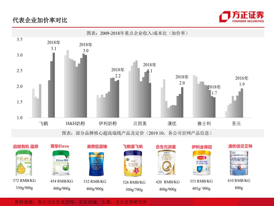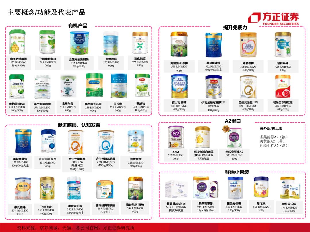 (3)国产品牌:代表企业包括飞鹤(06186)、澳优(01717)、健合集团、雅士利(01230)、贝因美、君乐宝、伊利、圣元、完达山等。