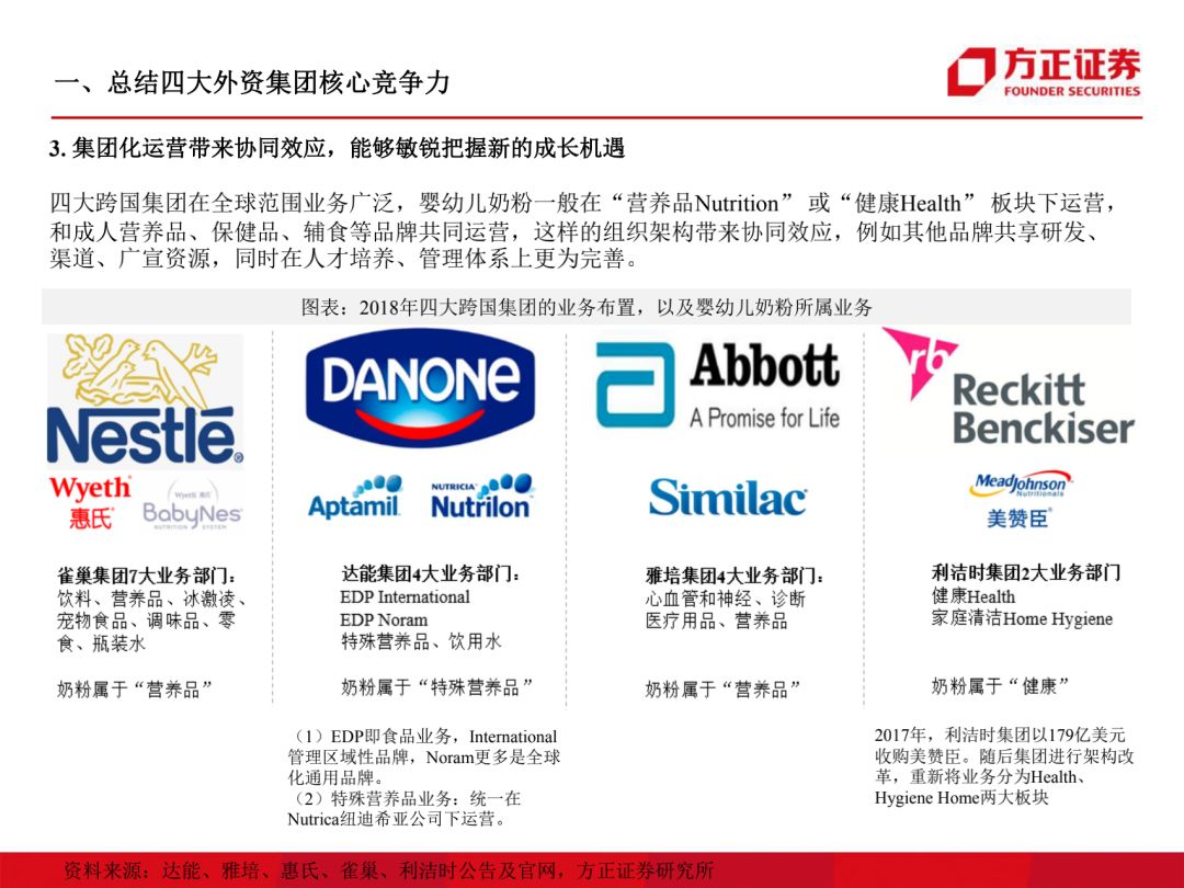 (1)跨国集团的“老四大粉”:雀巢集团(惠氏等)、达能集团(爱他美)、利洁时集团(美赞臣)、雅培集团(ABT.US)。