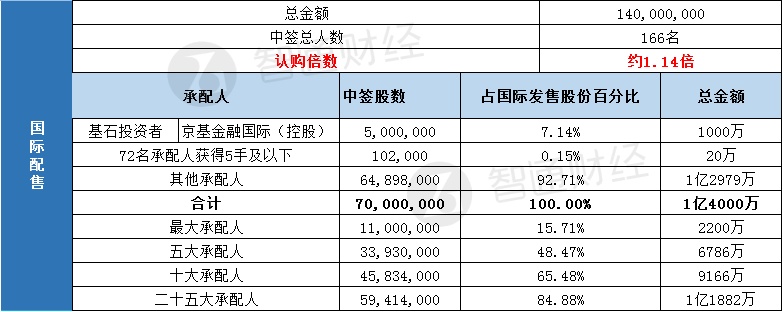 国际配售申购人数未披露,认购倍数约1.14倍。
