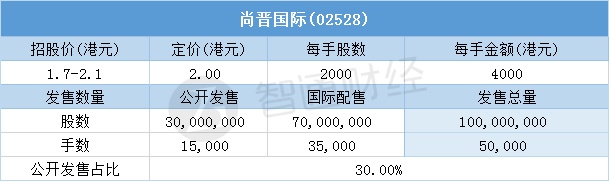 智通财经APP获悉,1月10日,尚晋国际(02528)配售结束。配售招股价1.7-2.1港元,最终定价2.0港元,每手4000港元。