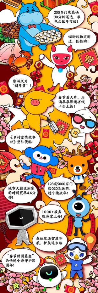 聚划算百亿补贴将在春节期间推出20亿补贴,让消费者任性买年货,盒区年夜饭30分钟送达,旅行过年成为“新年俗”,高科技护航春运路……第一个数字经济体不打烊的春节,正给这个最重要的传统佳节带来新年味。