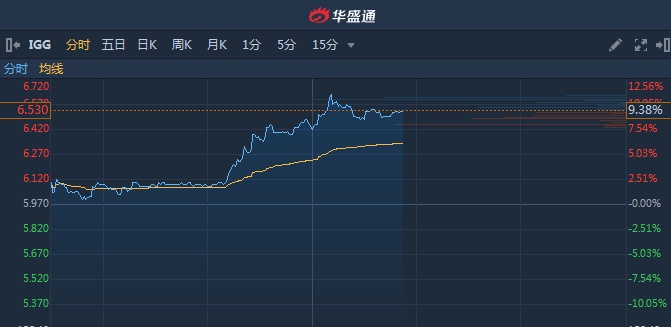 智通财经APP获悉,IGG(00799)盘中突获资金追捧,股价直线飙涨逾9%,高见6.65港元,创近五个月新高。截至13时51分,涨9.38%,报价6.53港元,成交额1.759亿。