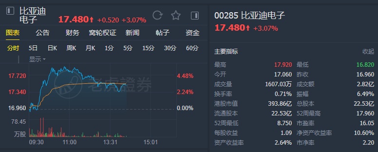 智通财经APP获悉,天风证券发报告称,看好比亚迪电子(00285)未来将受惠手机销量复苏、零部件价格提升及组装放量等,估计公司2019-2021年收入将分别为567.2亿元人民币、1,005.4亿元人民币、1,263.8亿元人民币,净利则分别为17.6亿元人民币、25.32亿元人民币及31.46亿元人民币,予其“买入”评级,目标价25.1港元。