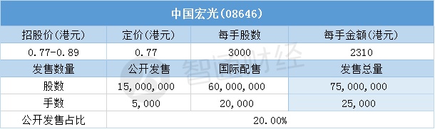 智通财经APP获悉,1月10日,中国宏光(08646)配售结束。配售招股价0.77-0.89港元,最终定价0.77港元,每手2310港元。