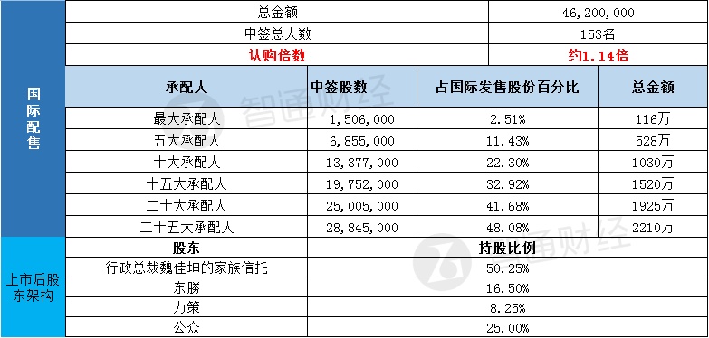 国际配售申购人数未披露,认购倍数约1.14倍。
