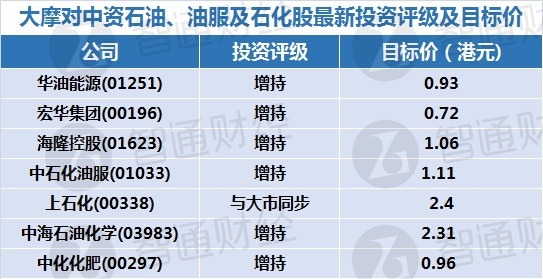 四、大摩对中资石油、油服及石化股最新投资评级及目标价