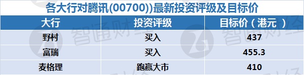 九、各大行对腾讯(00700))最新投资评级及目标价