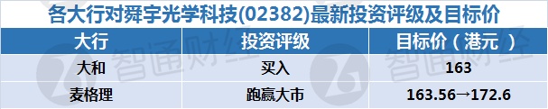 十一、各大行对舜宇光学科技(02382)最新投资评级及目标价