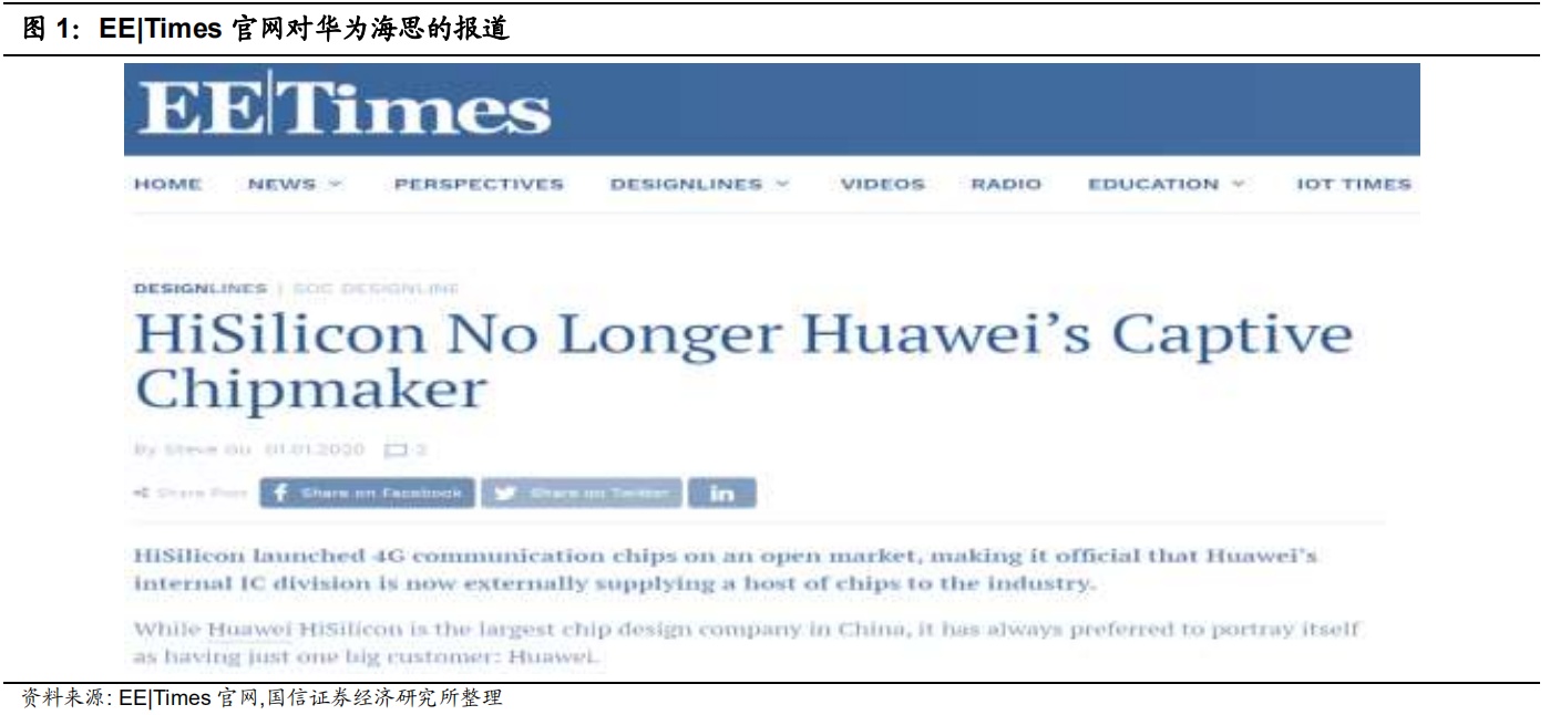 1. EE|Times 官网报道海思不再是华为的专属芯片供应商