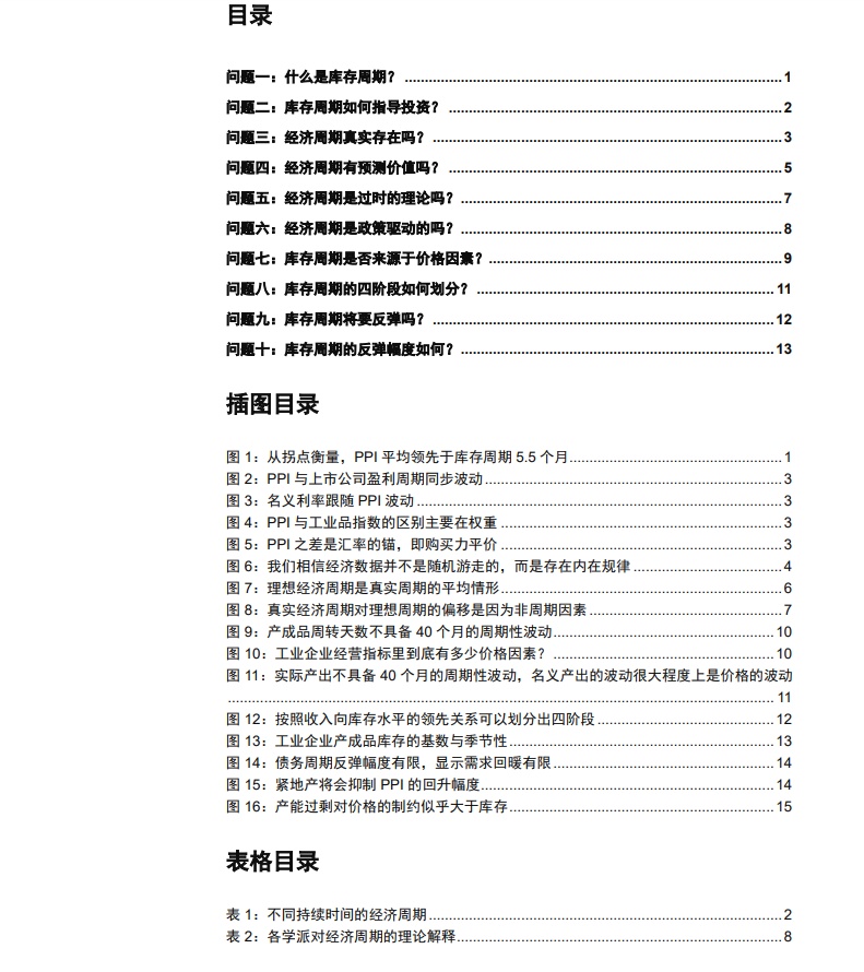 问题一:什么是库存周期?库存周期指工业企业产成品库存的平均持续 40 个月的周期性波动。实际上,短经济周期并不是一条曲线,而是一组曲线,如 PPI 领先于库存周期 5.5 个月波动。库存周期本身是短周期的滞后指标。