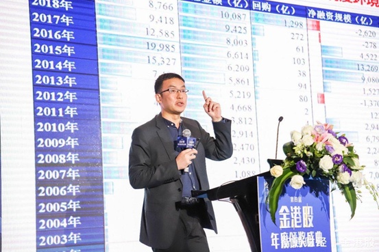 我们来看一下A股的情况,2019年A股市场融资金额其实还是比较高的。如果IPO加上再融资,A股市场的融资金额是8700亿人民币。但是在2019年大家会发现两个比较积极的现象,虽然上市公司的盈利并不好,但是2019年执行分红的规模,创出了历史新高,超过了1万亿。同时股票回购的情况,在A股市场2016年之前你基本上看不到,但是在2019年我们年度股票回购金额达到了约1300亿,所以在座各位如果按照我刚才那个净融资的计算公式,IPO加上再融资减掉分红减掉回购,我们把A股的情况算一下。