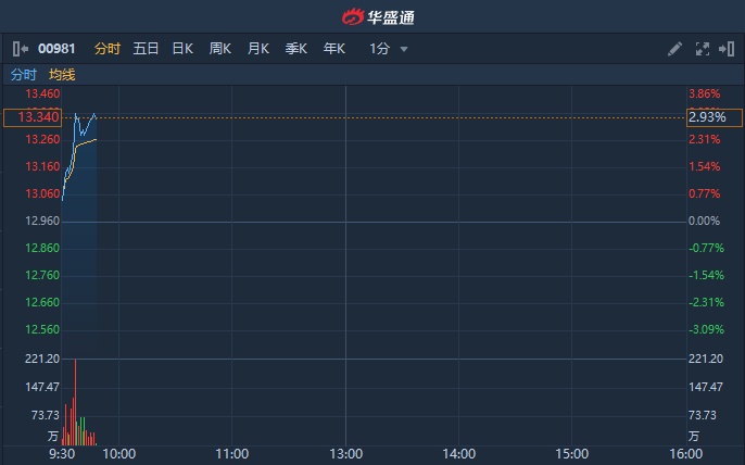 智通财经APP获悉,据媒体报道,中芯国际(00981)14nm生产线正式投产,提前一年实现量产,12nm亦开始客户导入。截至发稿,中芯国际涨3.09%,报13.36港元,成交额1.4亿港元,股价创近两年新高。