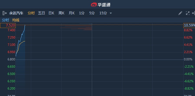 智通财经APP获悉,永达汽车(03669)获董事长张德安增持,早盘股价直线拉涨,截至9时47分,涨10.59%,报价7.52港元,成交额1967万。