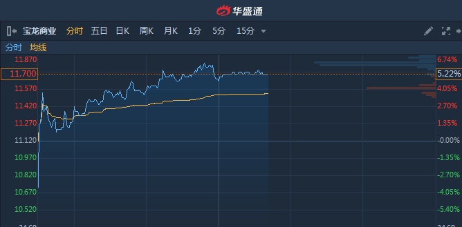 智通财经APP获悉,次新股宝龙商业(09909)再获资金热捧,盘中曾高见11.8港元,再度刷新上市新高,截至13时40分,涨5.22%,报价11.7港元,成交额5948万。