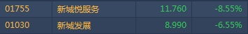 港股异动︱新城系尾盘突现跳水! 新城悦(01755)跌超8%新城发展(01030)挫逾6%