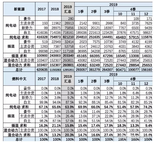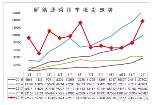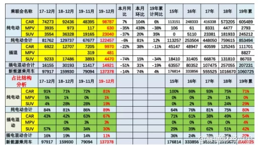 2019年12月份出现环比大幅拉升的情况,这也是因为新能源车的市场仍然是政策拉动的效果,12月份高销量能够实现油耗的均衡,同时能够获得当年度的新能源车补贴,比转年1月份销售效果要好很多,因此形成12月份的增量效应。