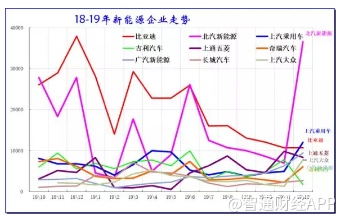 北汽新能源车的波动性增长较强,19年的3-6月连续增长较强,7月环比6月回落较大,且7-11月下滑,与历年12月的冲刺形成较大反差。