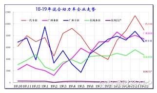 2018年到2019年混合动力通用车主要是日系车企表现相对优秀。一汽丰田、广汽丰田成为领军。近期广汽本田表现相对优秀,迅速成为领军。