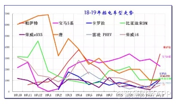 插混2019年12月表现弱,虽然新品成熟并增量的体现,但老款插混稍差。比亚迪的唐继续保持小幅下行的趋势,同时表现较好的是帕萨特等新品。