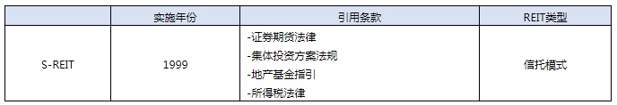 新加坡的REIT主要遵守证券期货法律(Cap.289),新加坡货币监管当局颁布的集体投资方案法规,和地产基金指引中有关法规和收益所得税规章。