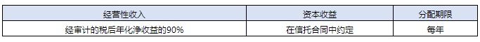 一个REIT产品每年以分红的形式向其单位信托证券持有人分配金额,不得低于当年经审计的税后净收益的90%。