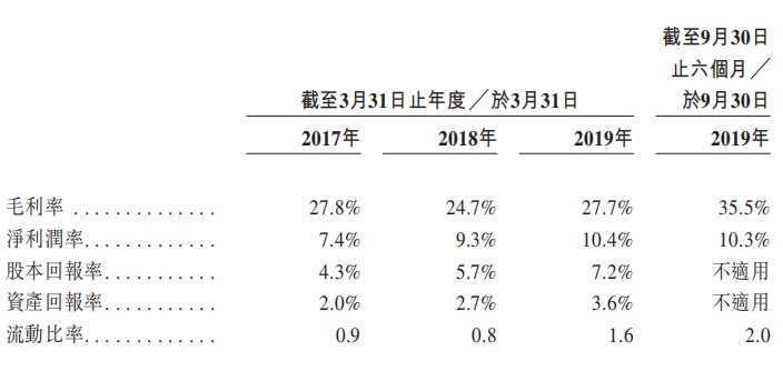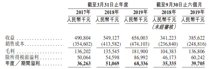 截至2017年、2018年及2019年3月31日止三个年度以及截至2019年9月30日止六个月,达丰的总体毛利分别约为人民币1.36亿元、人民币1.35亿元、人民币1,82亿元及人民币1.37亿元,及总体毛利率分别约为27.8%、24.7%、27.7%及35.5%。于往绩记录期,毛利总体增长,乃主要由于收益增长。