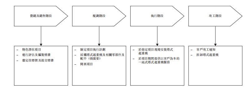 于2019年9月30日,公司机队拥有976台塔式起重机,均为“达丰”旗下品牌。公司主要专注于向中国特级及一级EPC承建商提供一站式塔式起重机解决方案服务并以此产生收益。于往绩记录期,已成功完成716个位于中国的项目,其中超过80%的该等项目由特级或一级EPC承建商授予。于往绩记录期,其收益主要来自华东地区的项目。